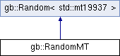Public Member Functions inherited from gb::Random< std::mt19937 > | |